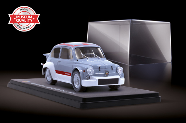 Assetto ribassato, marmitte sportive, cerchioni in lega e pneumatici larghi, sospensioni modificate e geniali soluzioni meccaniche... Una tranquilla utilitaria si trasformava così in un bolide da corsa, con l’anima sportiva e pungente dello Scorpione. Riscopri i modelli Abarth più iconici di sempre in riproduzioni perfette in metallo, presentate su una elegante base da esposizione e teca in crystal.
